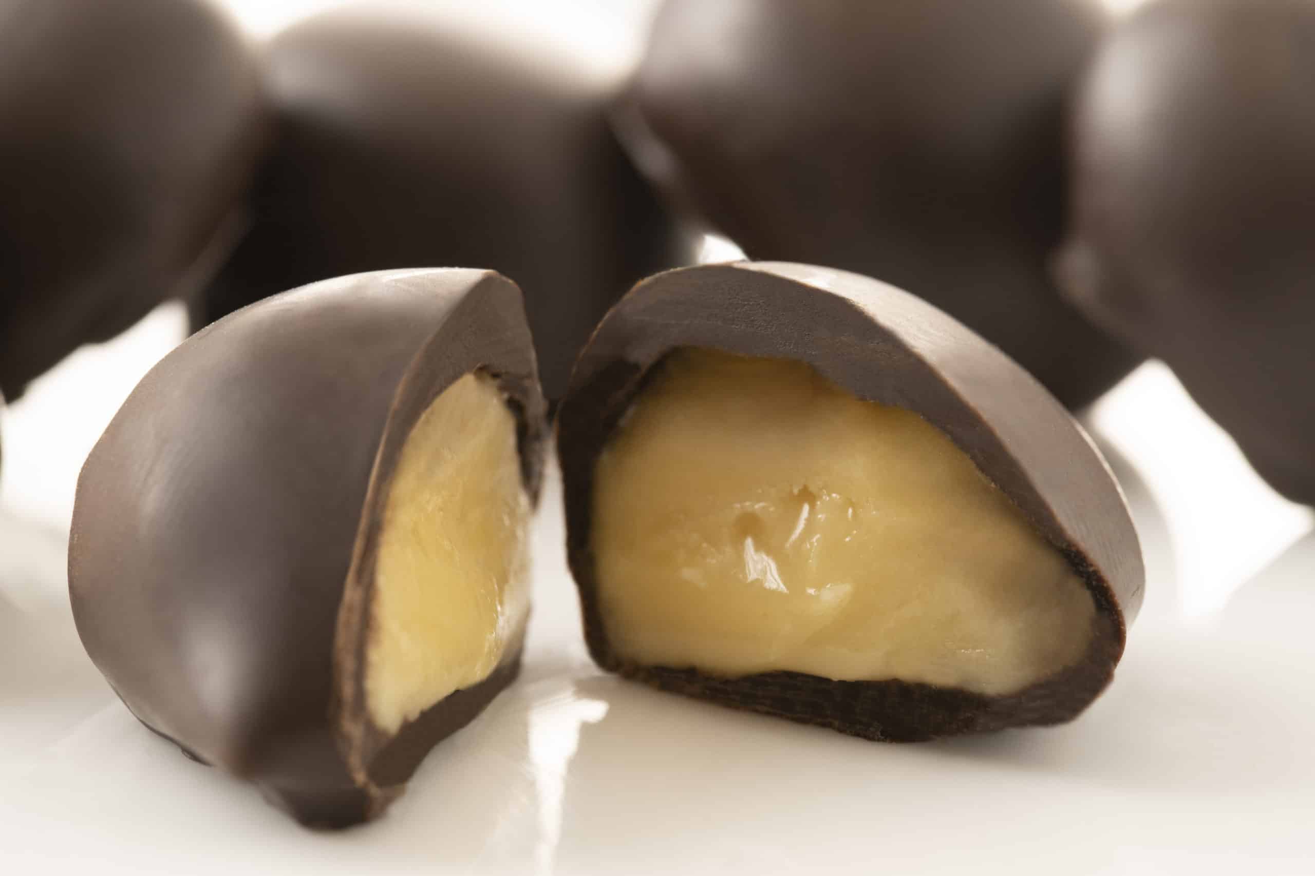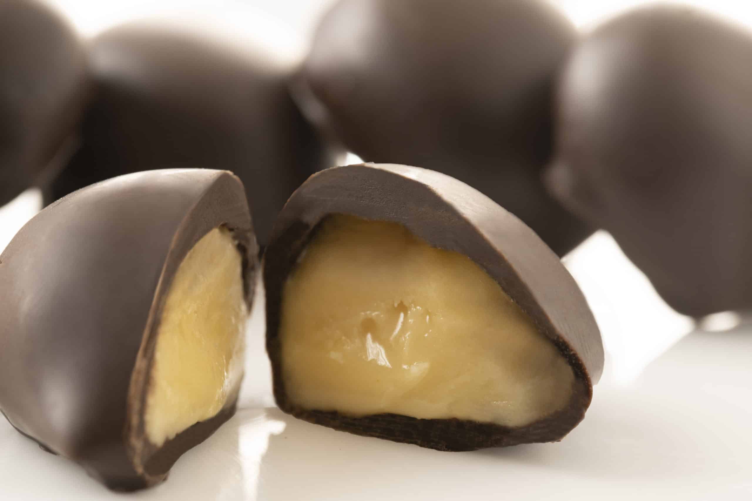 Tropical, mouth watering mango enrobed in rich dark chocolate. Escape to sun drenched beaches when you taste the delicious mango fondant.